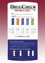 The Dip & Read Card tests for Amphetamines, Benzodiazepines, Cocaine, Methamphetamines, Methadone, Opiates, PCP, Marijuana. The dip & read test is fast (5 minutes) and visual.